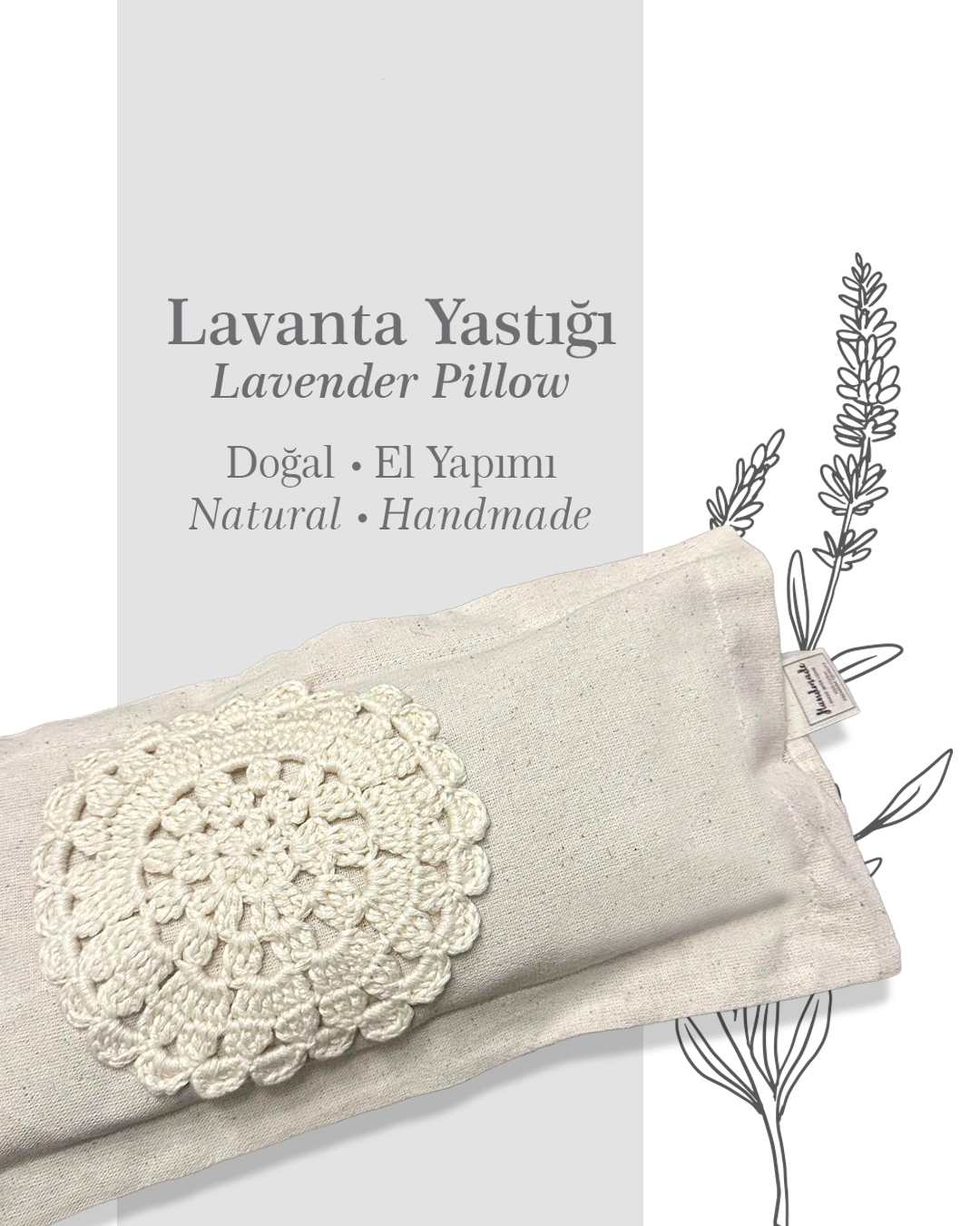 %100 doğal lavanta çiçekleri, buğday kabuğu.  Yastığınızın yanına veya altına koyarak huzurlu bir uykuya dalabilirsiniz.